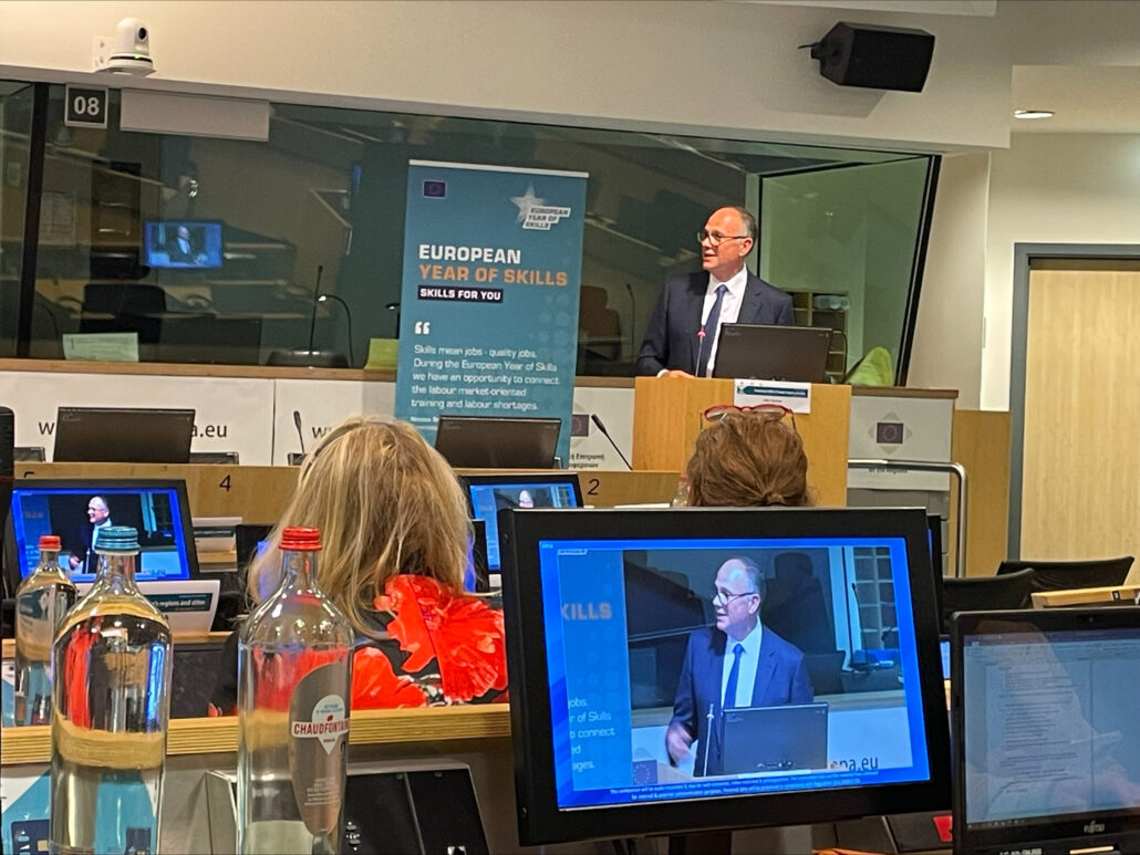 Mr Thomas Wobben, Director for Legislative Works, European Committee of the Regions and Ms Manuela Geleng, Director of Jobs and Skills, DG EMPL, DG Employment, Social Affairs, European Commission, was invited to look into the future actions to advance the European Year of Skills further form this year. Mr Wobben stated that we need “willingness to learn, to invest and to support people. At the European level, this is reflected by supporting with funds, cohesion funds which support places and Erasmus+ which supports people training. Ms Geleng thanked public authorities for bringing the European Year of Skills closer to the citizens. She added that to keep going with this work, all the stakeholders are needed on board and that initiatives such as the Pact for Skills and the CoVEs are excellent. She concluded by saying that the future of our society is at stake, and that’s why “skills, skills, skills” must continue to be present after the end of this year.