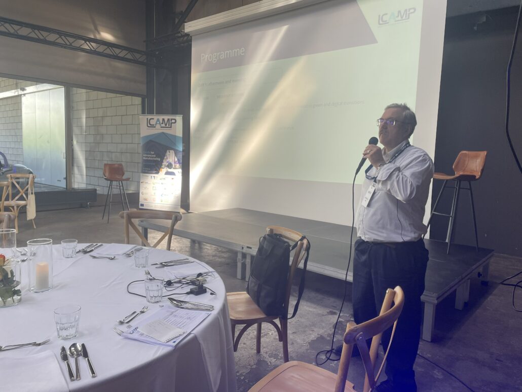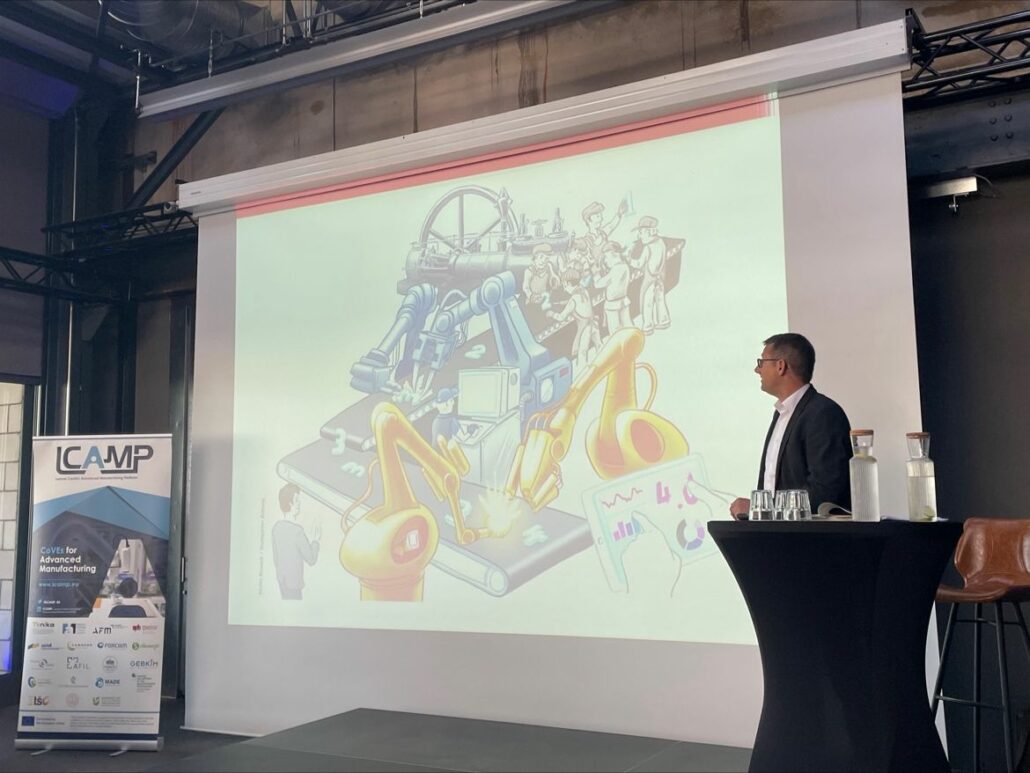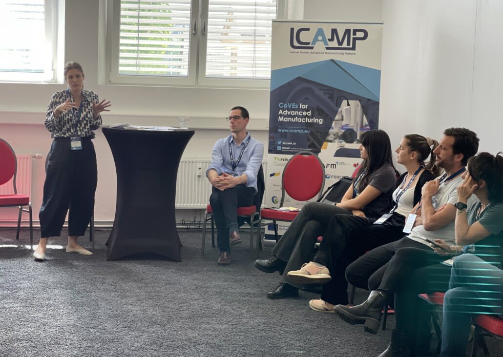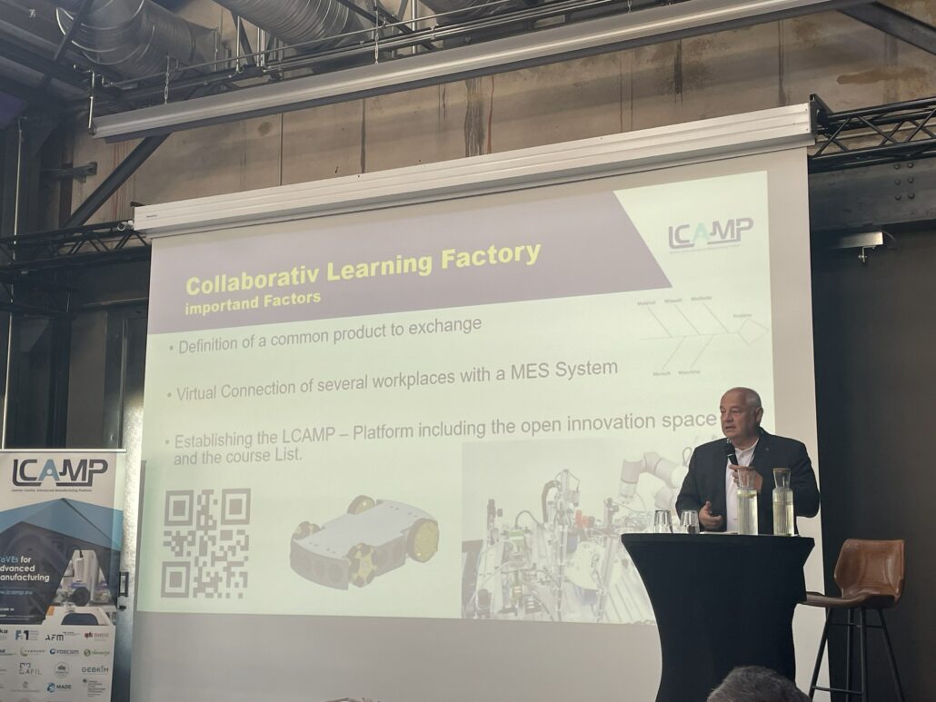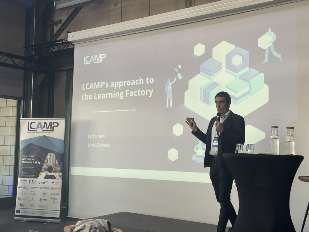 LCAMP experts, Unai Ziarsolo (LCAMP Scientific Coordinator) and Prof. Dr.-Ing. Klaus Dieter Rupp (DHBW Heidenheim) introduced the LCAMP approach to the Learning Factories. The innovative aspect that LCAMP is adding to the well-known Learning Factories approach, is the collaboration perspective between different VET Centers which are separate geographically. Thanks to the collaboration, learners will learn new methodologies, and cooperation and will benefit from mobility between the future Learning Factories that will be connected. In addition, they will be improving their knowledge through access to micro-credentials. LCAMP will facilitate a catalogue of these training courses through its platform.