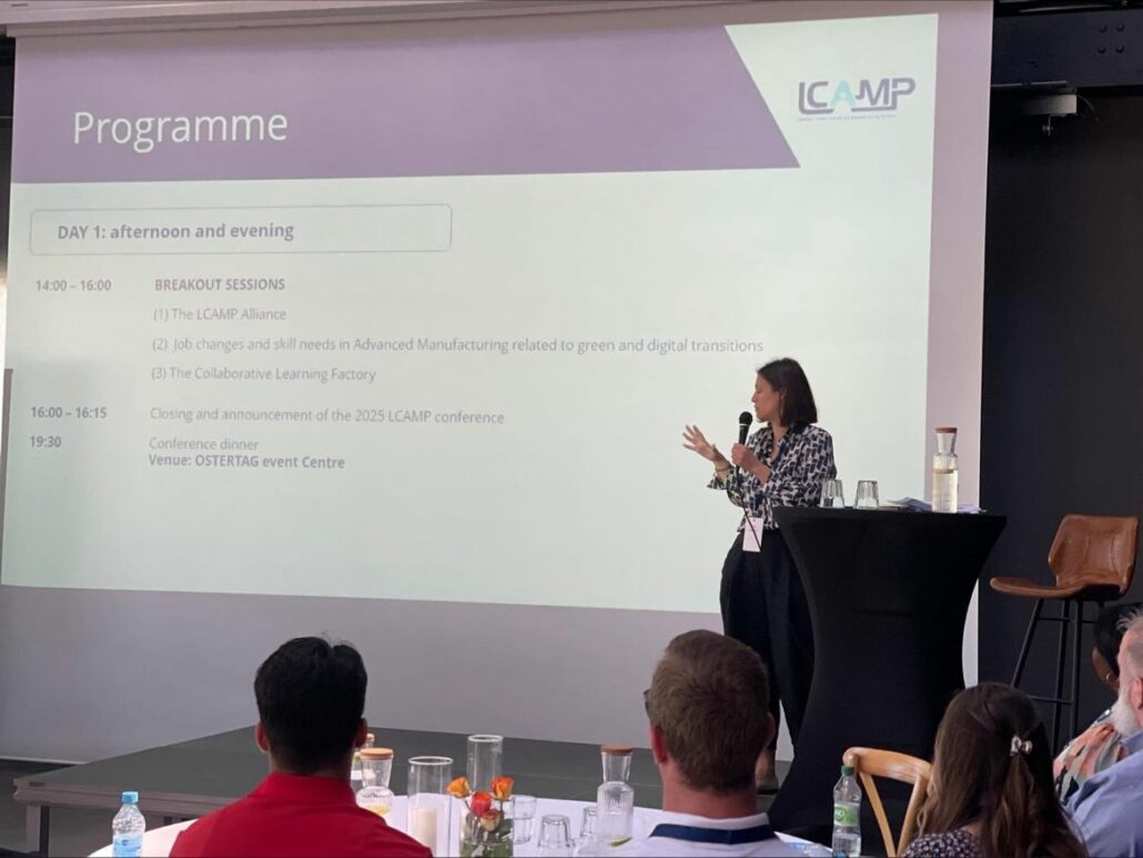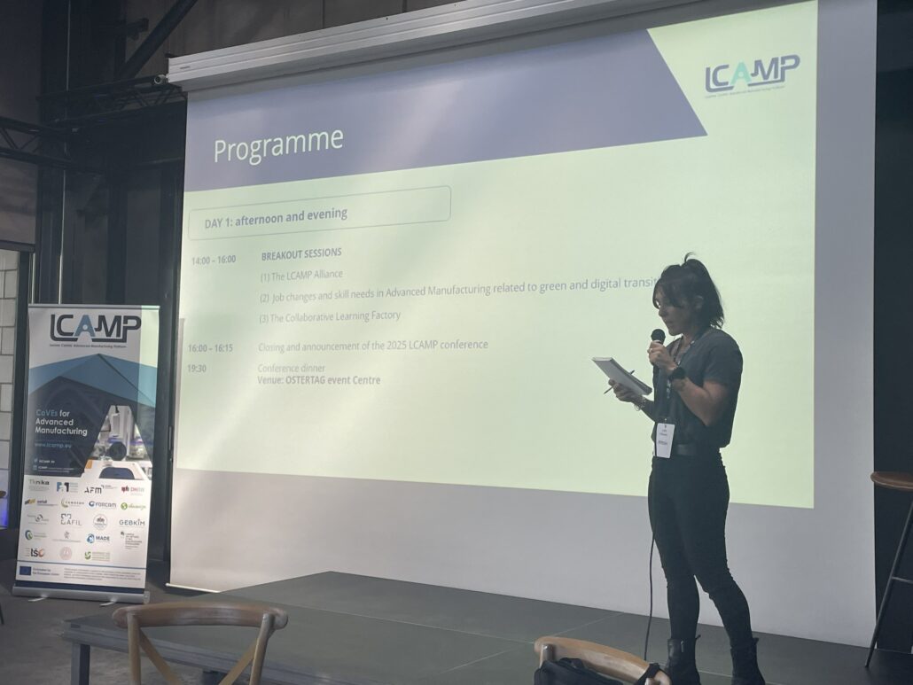 The afternoon session was dedicated to exploring three key activities of the LCAMP project and so to involve in the project the conference participants. The first breakout session was focused on the LCAMP Alliance. Participants expressed their interest in becoming members and that the Alliance would help them with their project ideas and finding mobility opportunities for their learners. In the second breakout session, the Skills and Jobs Observatory presented their first results on the impact of selected jobs of the twin transition. In the Collaborative Learning Factories participants had the opportunity to experience in practice what learners will have to do when they are involved in such learning environments.