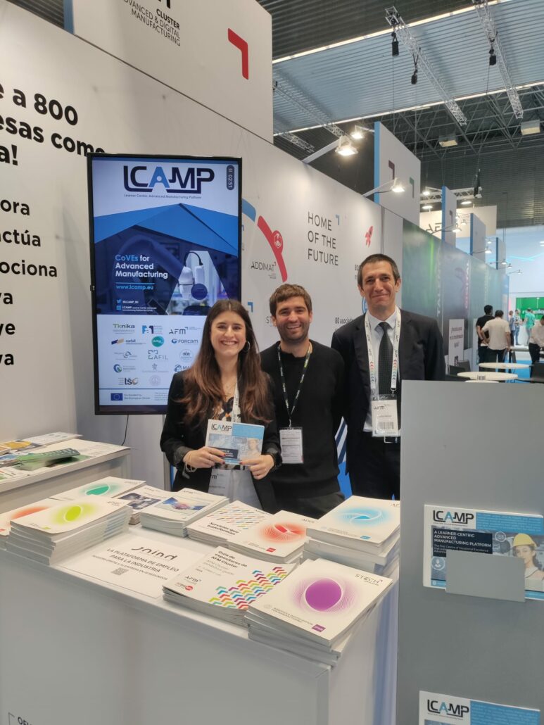 In this context, AFM Cluster was exhibiting at its stand located in hall 1, where it took the opportunity to promote the projects it is currently participating in. Among these projects, the LCAMP project was presented, along with the projection of the promotional poster and the distribution of the project’s brochures to visitors at the stand.