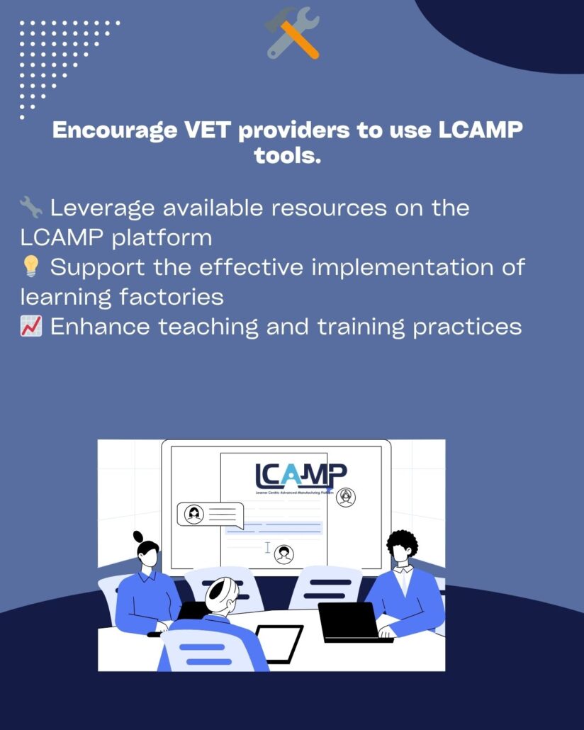 As Europe navigates the transition to a more digital, green, and resilient economy, the role of Vocational Education and Training (VET) systems has become increasingly central. The second Policy Recommendation developed under the LCAMP project provides strategic guidance on how Learning Factories can contribute to this transformation, ensuring VET remains relevant, future-oriented, and responsive to labour market needs.