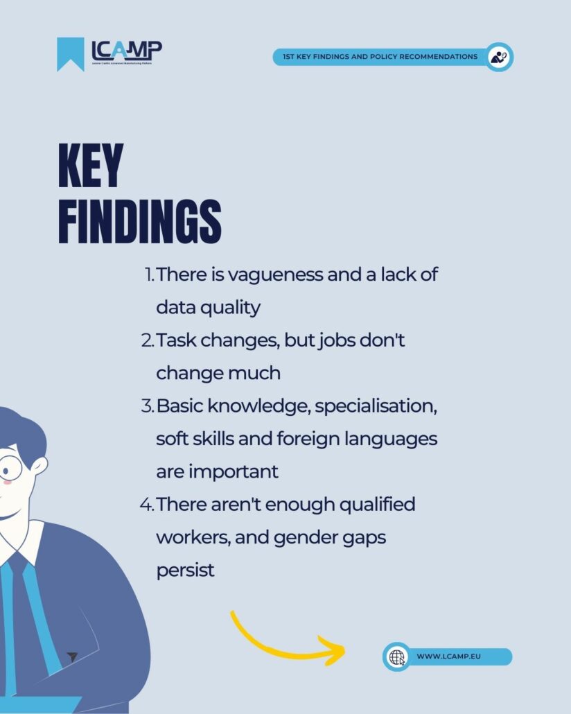 The LCAMP Alliance has released its first policy recommendations addressing the impact of digital and green transitions on jobs in the advanced manufacturing sector. These recommendations highlight the importance of a skilled workforce, the need for high-quality data on required skills, and the value of a task-based approach that avoids a solely technological focus. The Policy Brief is rooted in LCAMP’s extensive research. For further details and related reports, please visit our website.
