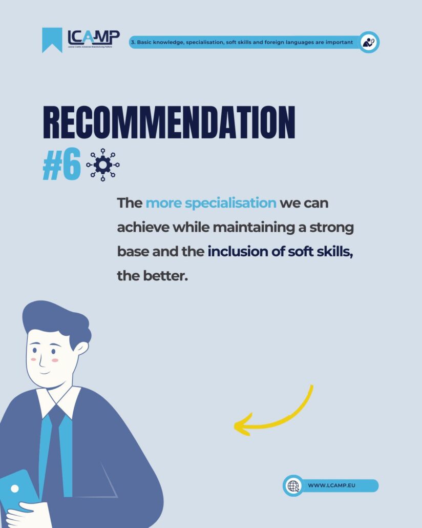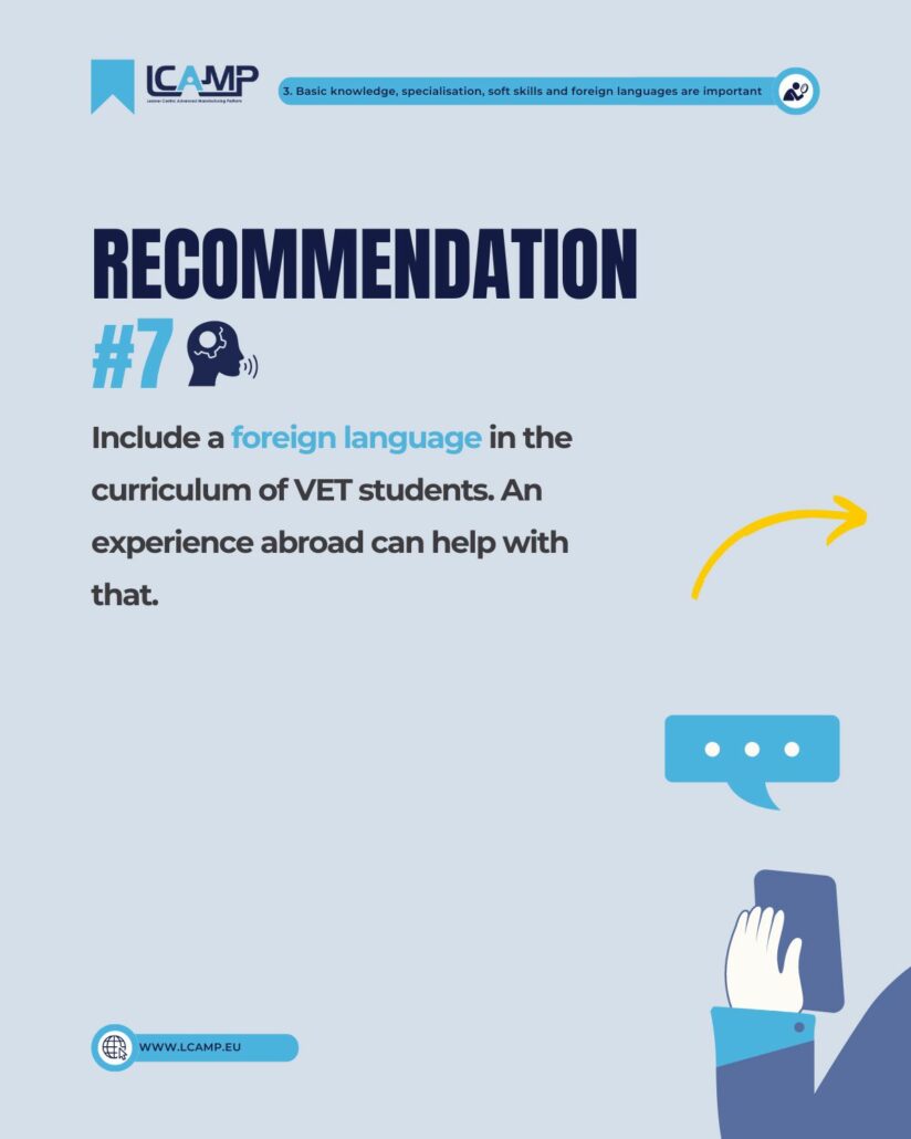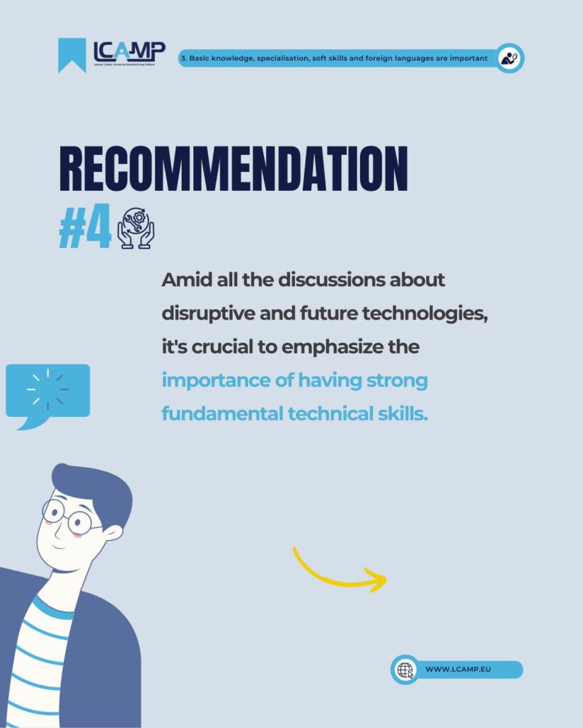 In today’s job market, fundamental technical skills continue to be crucial for employers. Companies are encouraged to invest in in-house training to ensure their workforce is equipped with these essential skills. Moreover, the integration of soft skills with technical expertise is vital for company success. Language proficiency, particularly in English, remains highly valued, making it essential to include language courses in VET curricula.