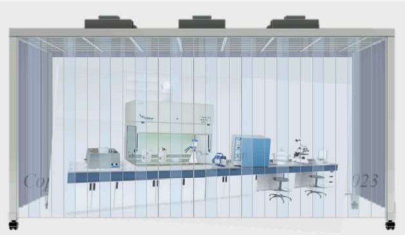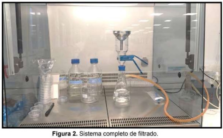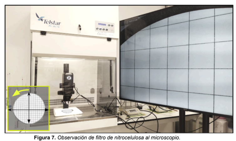 Vacuum filtration equipment, laminar flow hood, digital microscope, precision balance, drying oven.