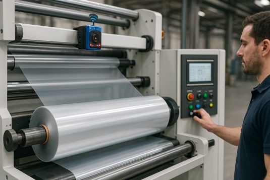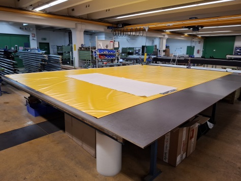 A work table for manual, visual quality inspection, followed by assembly, with an area of (10 x 4) m, is to be converted into an automated rewinding system with non-contact surface quality inspection, followed by assembly, on a floor area of (3 x 4) m.